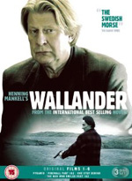 Between 1994 and 2007, the first nine Wallander novels were made into films in Sweden starring Rolf Lassgård as Wallander. (The illustrations are the cover art of the Swedish DVDs)